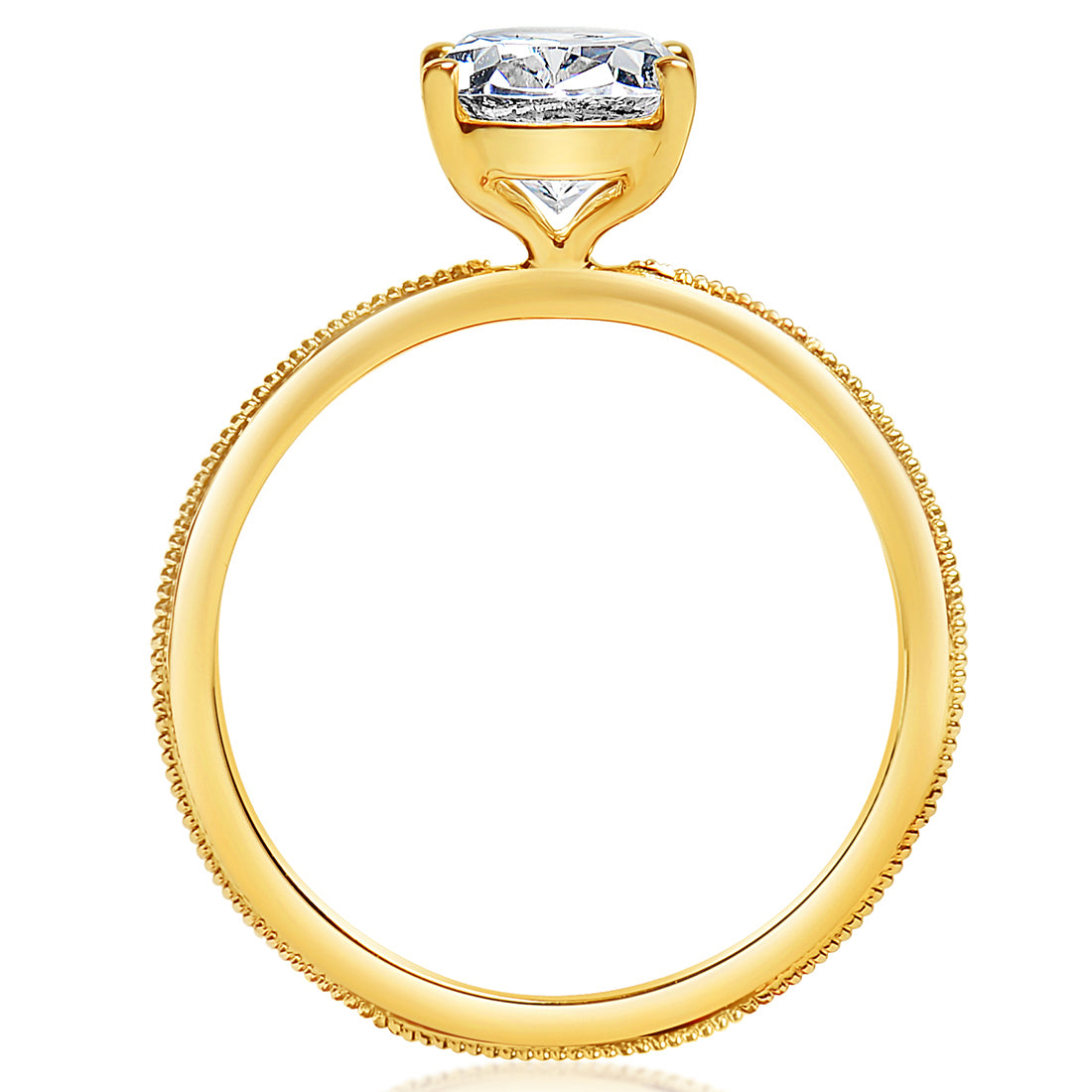 Unit price perThis solitaire engagement ring features a milgrain detail running around the middle of the band and four button prongs. Image features a 1ct oval diamond center stone.