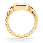 Emerald Diamond Three Stone Rope Shank Engagement Ring