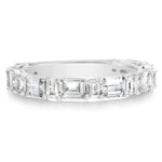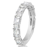This ring features alternating direction emerald cut diamonds 3/4 of the way around the ring.