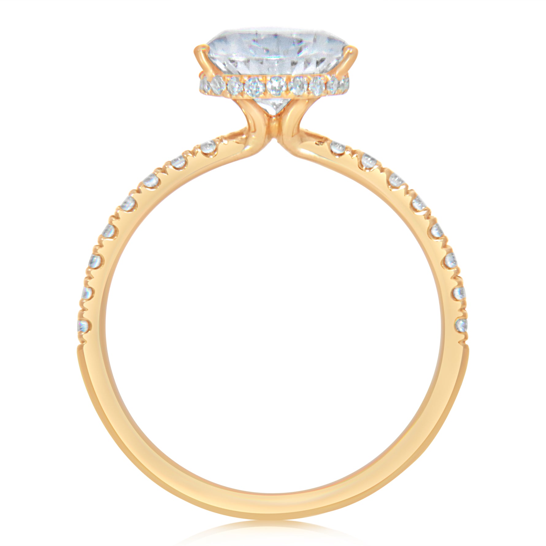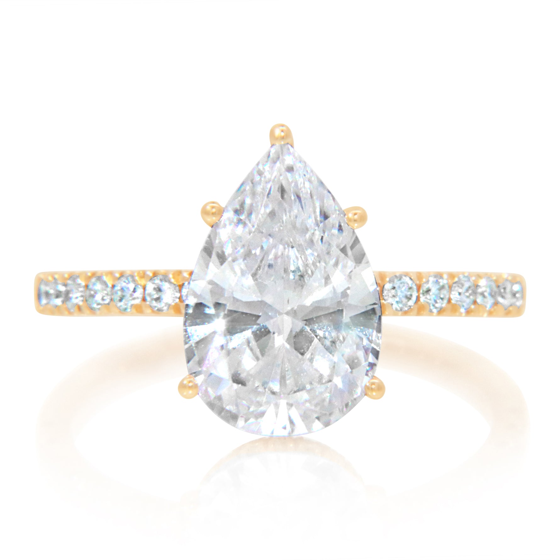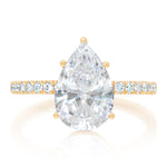 Unit price perThis engagement ring features a pear diamond center stone with a hidden halo beneath it. The shank features diamonds in a split prong setting. Image features a 3.5ct center stone.