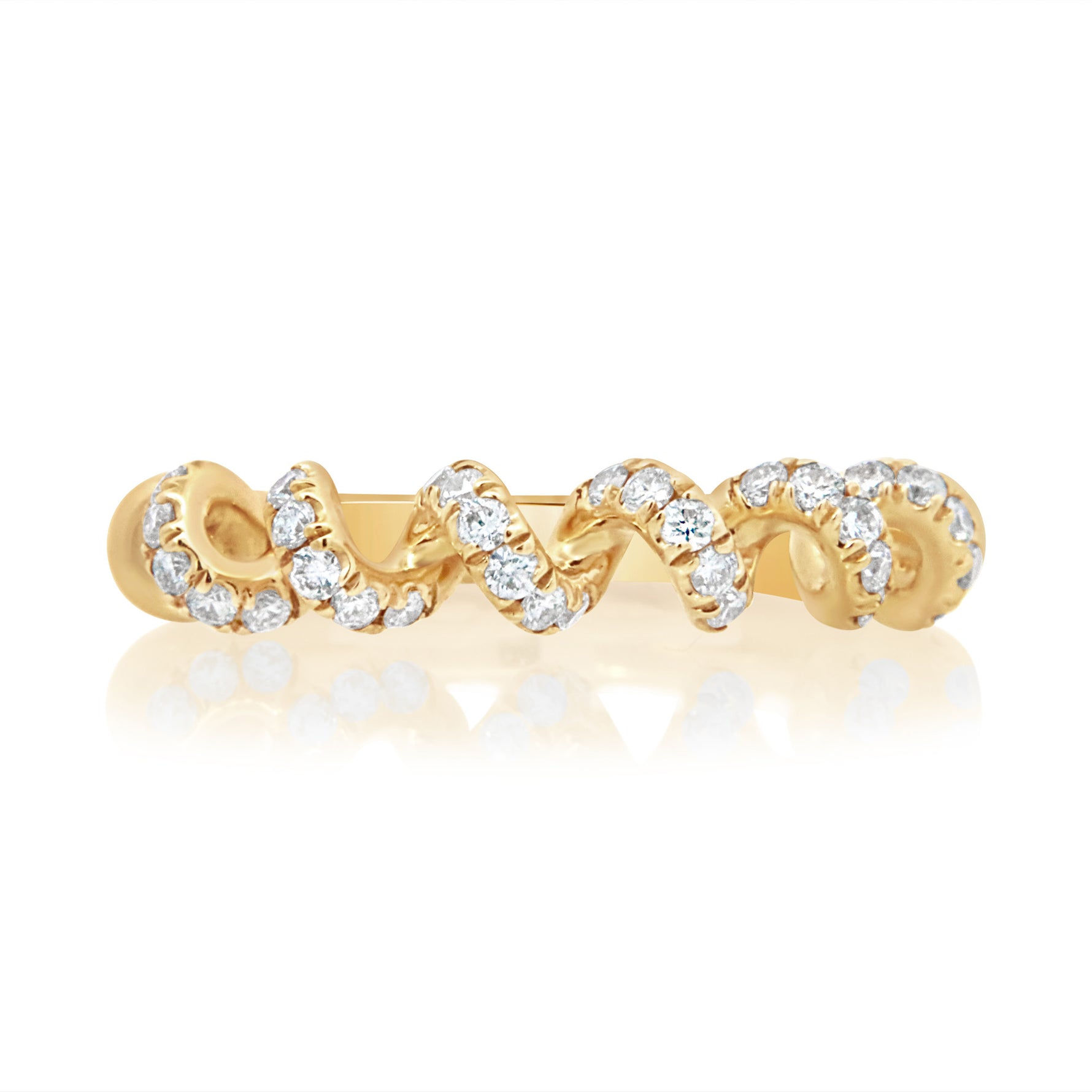 Unit price perThis ring features a coiling row of diamonds halfway around the ring to create a scrunchie effect.